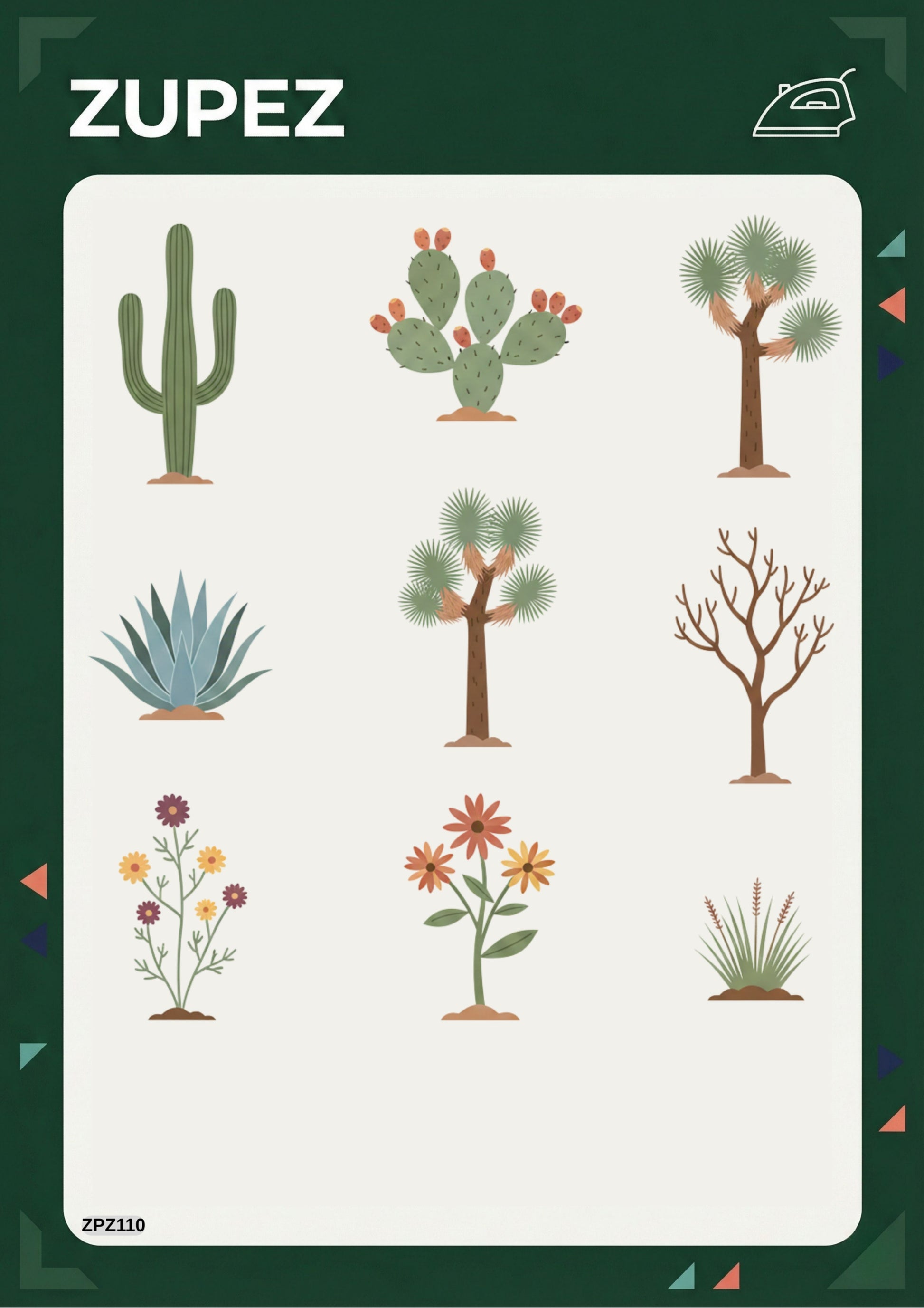 Zupez ütüyle uygulanabilir transfer tasarım, tekstil projelerinize yaratıcı bir dokunuş katmanın en pratik yoludır. Bu botanik temalı premium transfer baskı, kaktüs, çiçek ve çeşitli çöl bitkileri desenlerini içeren zarif bir koleksiyon sunar. Tişört, sweatshirt, hoodie ve diğer kumaş yüzeylerinizi kişiselleştirmek için ideal olan bu hazır tasarım, evde kolayca uygulanabilir. Sadece ütünüzü kullanarak dakikalar içinde profesyonel görünümlü sonuçlar elde edebilirsiniz. Modern illüstrasyon tarzında hazırlanan bu botanik desenler, minimal çizgileri ve doğal renk paletiyle şık bir görünüm sağlar. Net detayları ve canlı renkleriyle uzun ömürlü kullanım sunan bu transfer tasarım, hem kişisel projeleriniz hem de hediye hazırlıklarınız için mükemmel bir seçimdir. Craft ve hobi tutkunları için özel olarak tasarlanan bu premium kumaş transfer, butik kalitede sonuçlar vaat eder. Hızlı uygulama ve kalıcı sonuçlarıyla tekstil dekorasyonunda yeni bir deneyim yaşayın. Trend tasarımları keşfedin ve kendi tarzınızı yaratın.